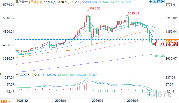 现货黄金日线图 来源:易汇通北京时间3月25日10:40 现货黄金 报 4583.15 美元/盎司