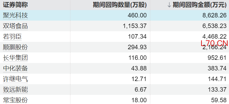 9家上市公司股票获回购,聚光科技回购金额最高