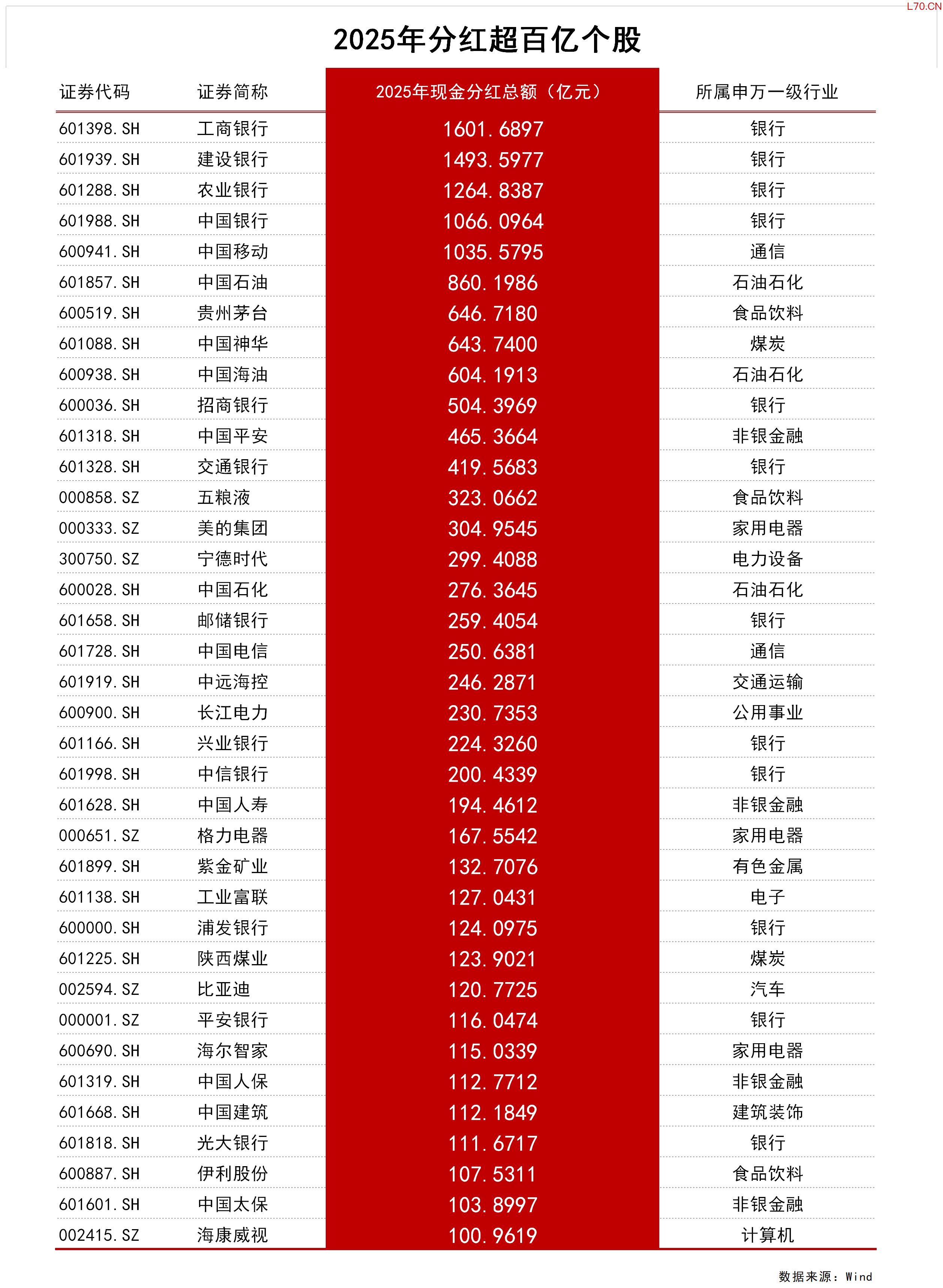 2025年A股上市公司分红超2.63万亿元 5股分红超千亿