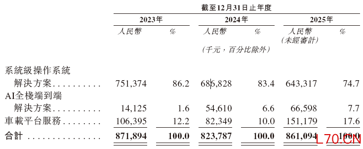 技术开发服务,向客户(主要是主机厂)收取(a)汽车操作系统;(b)AI赋能软件应用程序及/或(c)与车载平台服务相关的软件,在集成至主机厂量产车辆前的设计、开发、测试及定制方面的费用;