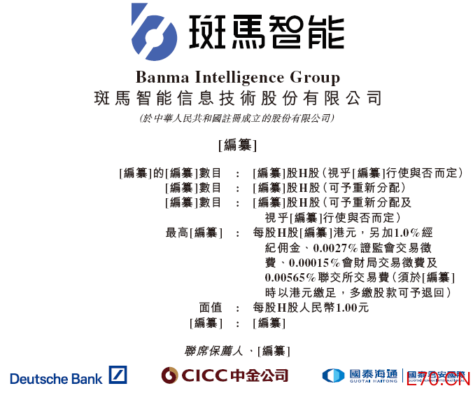 德意志银行、中金公司、国泰君安国际为其联席保荐人;