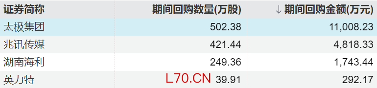 4家上市公司股票获回购主力资金,太极集团回购金额最高