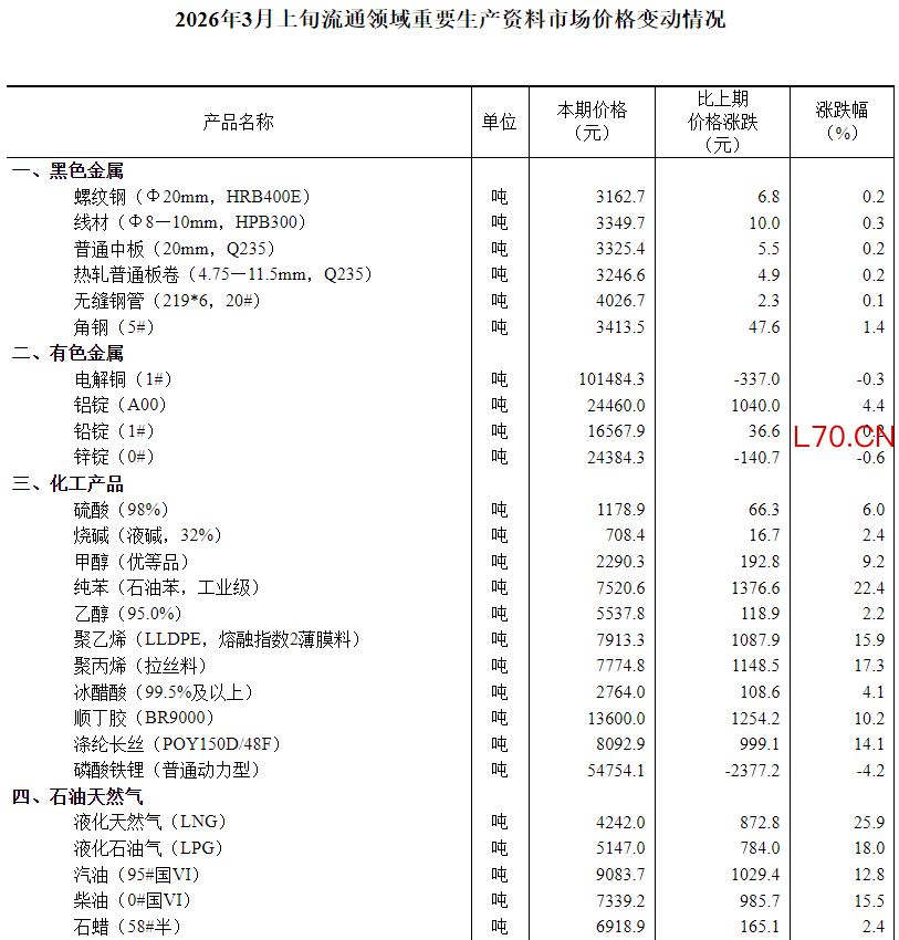 国家统计局:3月上旬流通领域重要生产资料市场37种产品价格上涨